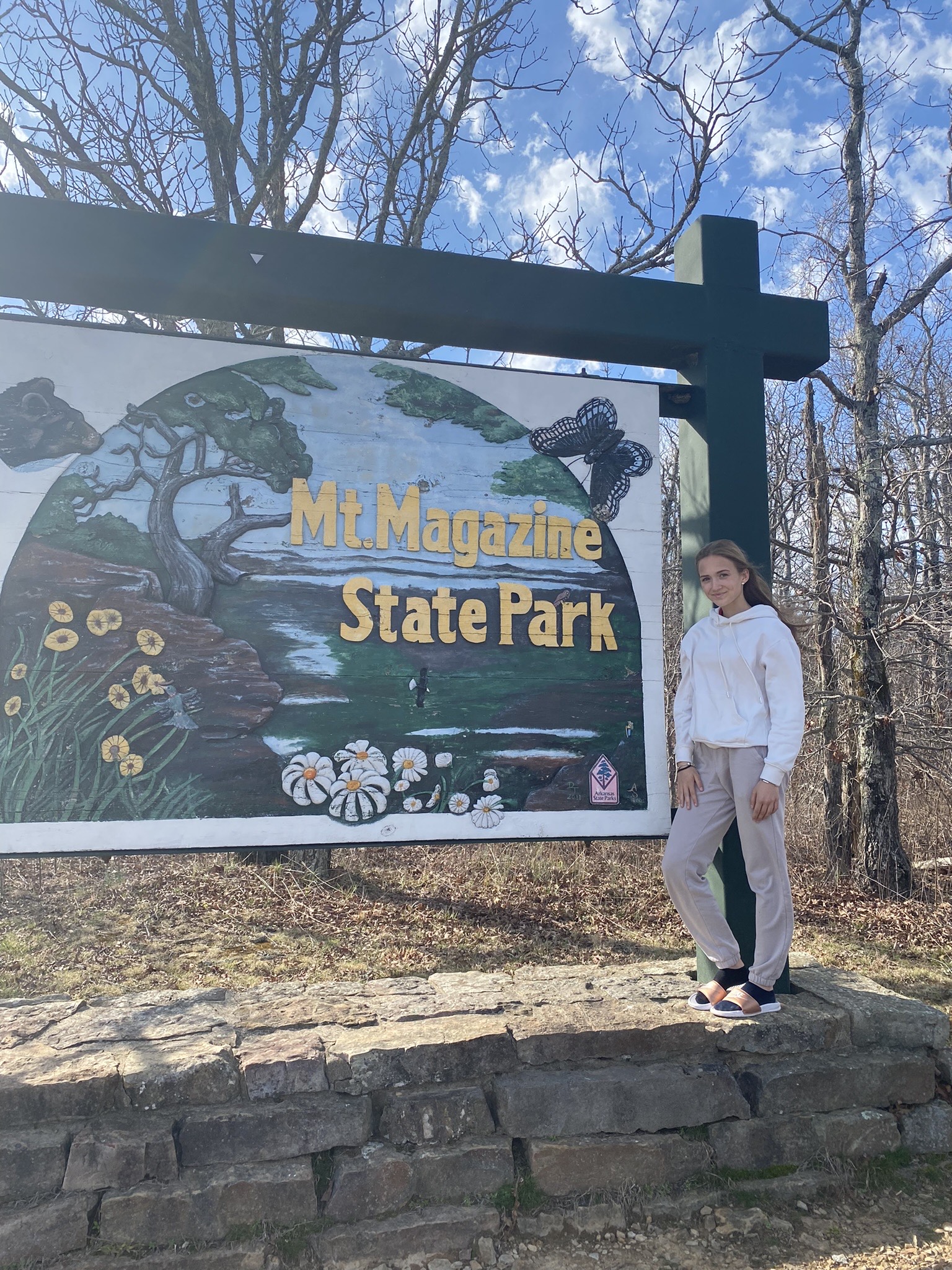 Na jarní prázdniny jsme jeli s rodinou na čtyři dny do Mount Magazine Lodge v Arkansasu. Mount Magazine je nejvyšší bod Arkansasu, a tak jsme viděli spoustu přírody ze všech možných vyhlídek. Bylo tam i mnoho národních parků, po kterých jsme se procházeli, jeli jsme na zip line a dokonce jsem zažila vyjížďku na koních. Na hotelu byla posilovna, vířivka a bazén. Moje nejoblíbenější část hotelu byla restaurace, kde jsme měli neomezené švédské stoly. Myslím si, že mimo mnoha zážitků se během prázdnin i více vybudoval náš vztah s hostujícími rodiči.