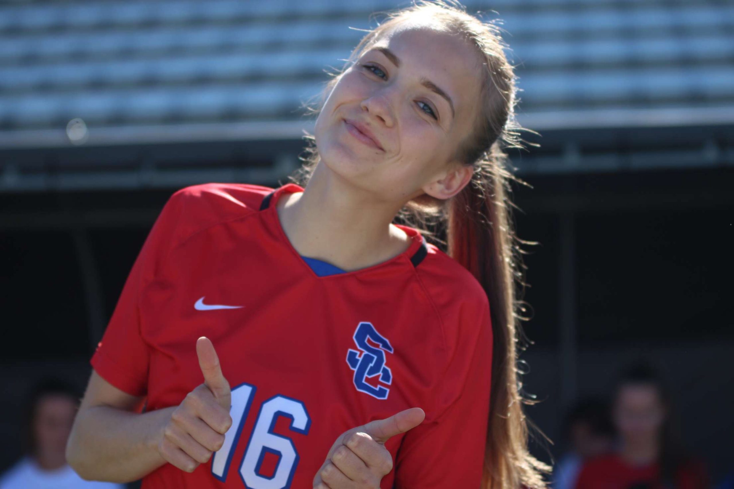 Fotbal na škole probíhal každý den. Tréninky dvě až tři hodiny a dvakrát týdně zápasy. Nebylo to nic lehkého a byli jsme všichni dost unavení, ale touha po vítězství nás posouvala dál. Dostali jsme se až do play-offs, kde nám to bohužel nevyšlo. Ale to nemění nic na tom, že to byla nejlepší fotbalová sezóna v mém životě. Máme s týmem spoustu zážitků mimo hřiště, cesty na zápasy, týmové večeře a podobně. Jelikož jsem Senior (maturant), tak jsem byla i součástí senior night, kde mě vyhlašovali, a mimo spousty dárečků, jsem dostala i ocenění.
