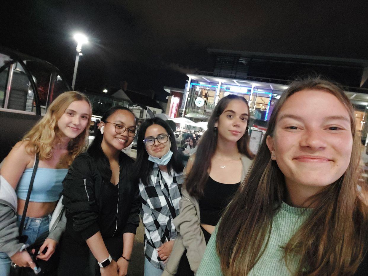 Do školy to mám 20 minut chůzí nebo 5 minut autobusem. Školou mě první den provedli a mohla jsem si vybrat některé předměty. Mezi mé oblíbené patří angličtina, kde detailně probíráme Macbetha a déle Home Economics, kde se bavíme o výživě a jídle obecně. Přestože francouzštinu a irštinu nestuduji, musím ve třídě sedět, ale aspoň mám čas na dělání domácích úkolů nebo čtení. Byla jsem překvapená, že například v matematice jsme v ČR o pár let napřed, takže jsou tyto hodiny spíše opakováním v jiném jazyce. Kvůli nařízením musíme ve škole nosit roušky a stále dodržovat rozestupy. Okna musí být všude otevřené a ve škole se v podstatě netopí, takže je tam hrozná zima. Díky nim jsem si ale našla skupinku kamarádek, když nás každý den posílají svačit a obědvat na zem hokejového hřiště. Seznámila jsem se se španělskými mezinárodními studentkami a pak například s holčinou, která je z Filipín, ale už od mala bydlí v Irsku. Spolu s nimi jsme několikrát jely prozkoumat centrum Dublinu a také zábavný Tayto park, jehož návštěvu bych rozhodně doporučila.