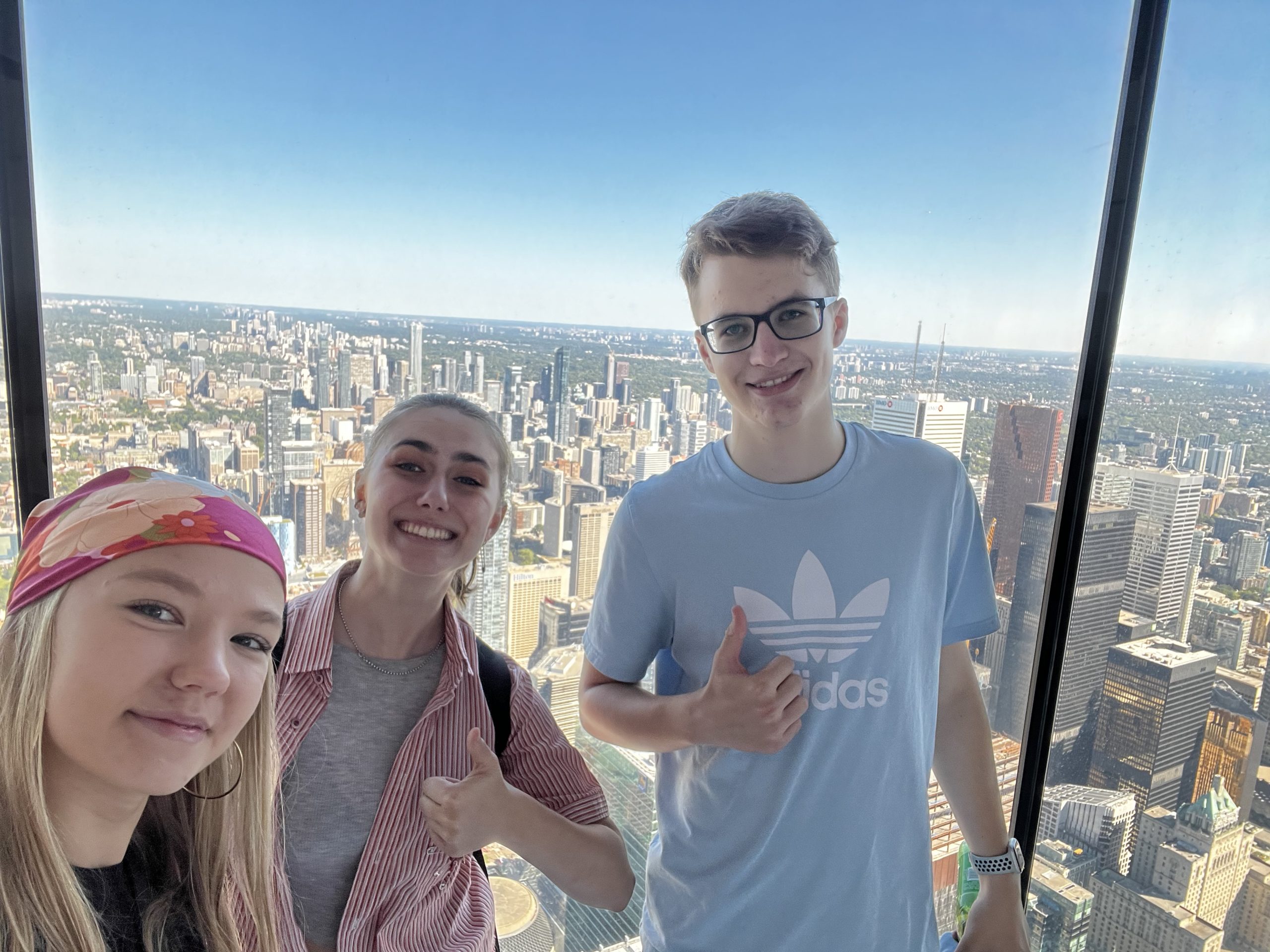 26. srpna -den odletu- jsem na letišti potkal další tři studenty, Ninu, Simču a Davida a společně jsme letěli do Toronta. Měli jsme jeden přestup ve Vídni, ale vše šlo velice plynule a bez problémů. Na letišti v Torontu jsme se potkali s lidmi z Ciss a společně jeli do hotelu na orientation. Strávili jsme tři dny poznávaním Toronta. Byli jsme v CN Tower, prošli jsme Young Street a Dundas Square, známý Toronto sign a také hrad Casa Loma. Potkal jsem spousta dalších studentů z různých zemí a pro mě to byl nezapomenutelný zážitek. 28. srpna jsme se všichni rozloučili a odjeli do různých měst v Kanadě. Já zamířil do Orillia kousek od Toronta, kde právě teď jsem se svojí skvělou hostitelskou rodinou.